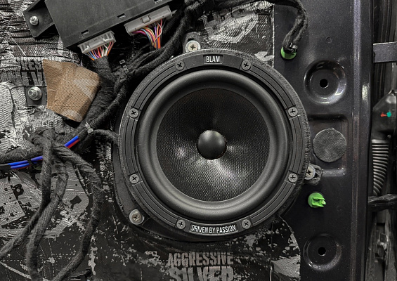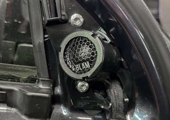 В передние и задние двери мы установили акустику от компании Blam, на фронт двухкомпонентный комплект Blam Express 165 ES, на тыл - Blam Express 165 EC, которые мы подключили от 4-х канального усилителя Helix M FOUR.