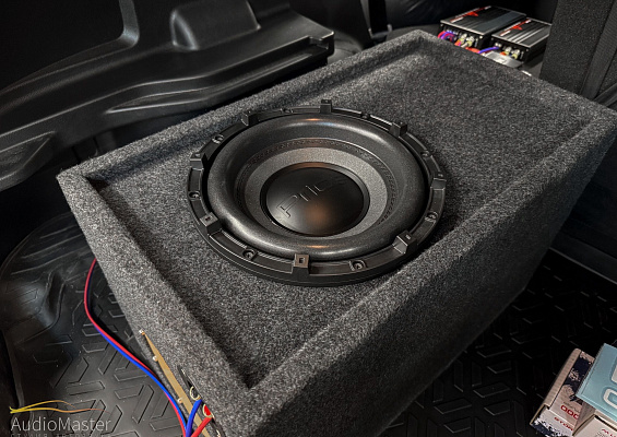 За низкочастотное звено отвечает 10-ти дюймовый сабвуфер Pride M9 , установленный в короб ФИ, и моноблок Aura Storm-D1.1000.