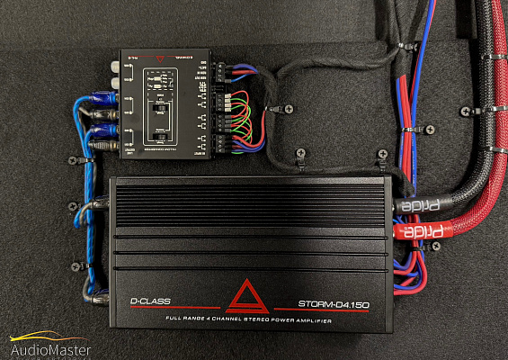 Акустику и 12-ти дюймовый сабвуфер Pride M.6 12 ver.2 подключили от 4-х канального усилителя Aura Storm D4.150.
