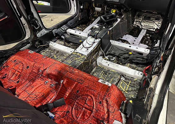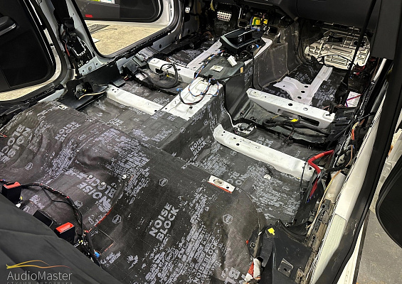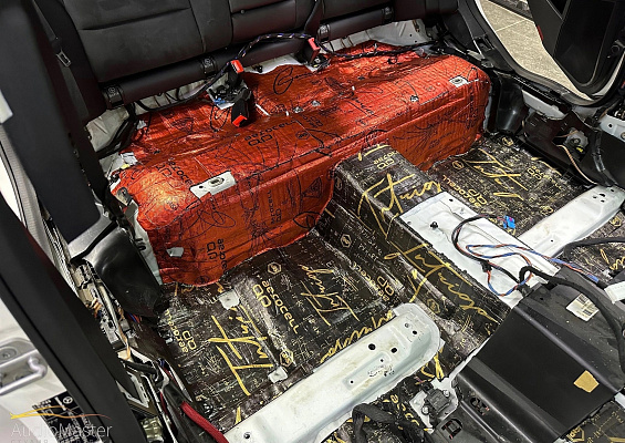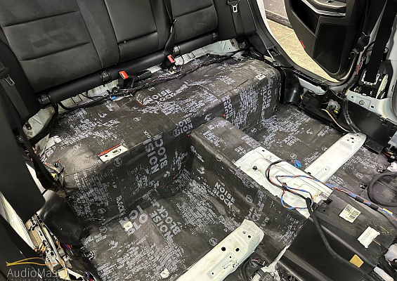 Выполнили дооснащение аудиосистемы тыловой подзвучкой и произвели шумоизоляцию пола.