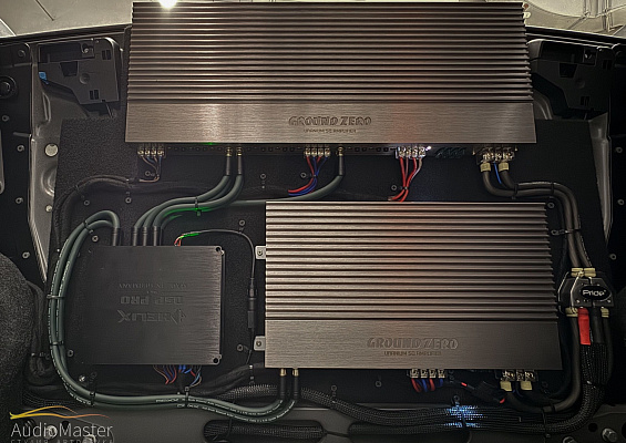 Фронтальную акустику подключили от 6-ти канального усилителя Ground Zero GZUA 6SQ.