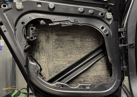 В качестве шумоизоляционных материалов первым слоем выступила виброизоляция STP Aero 2мм, вторым слоем шумоизолятор STP Sonora, на обшивки дверей мы нанесли шумопоглотитель STP Biplast 15 Wave.
