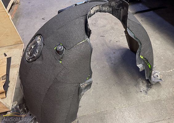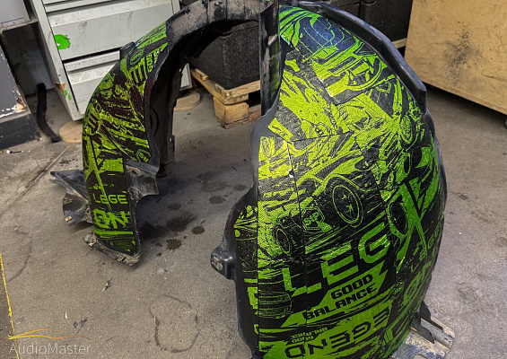Пластиковые подкрылки обработаны виброизоляцией STP Legend 2 и теплоизоляцией STP GreenFlex 4.