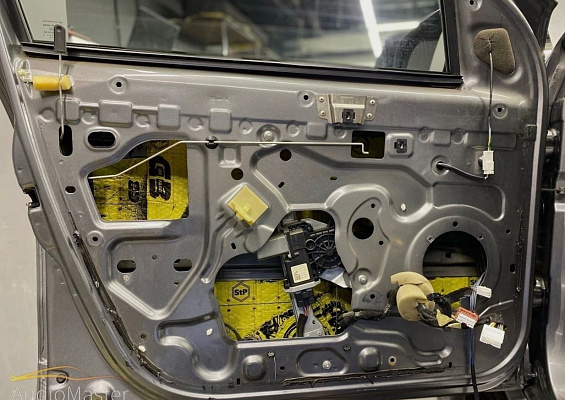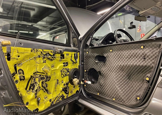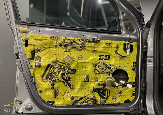 Внутренняя и наружная рубашка двери были обработаны STP Good Balance толщиной 2мм. На дверные обшивки нанесли STP Biplast Wave 15мм.