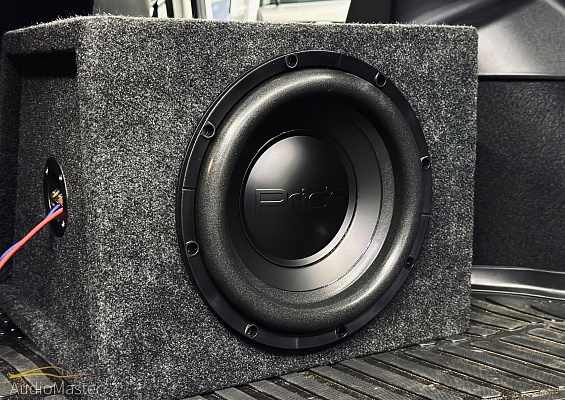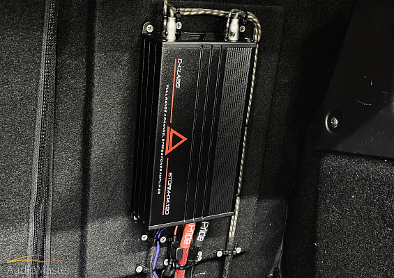 К 4-х канальному усилителю Aura Storm - D4.120, мы подключили 2-х компонентную акустику Pride Harmony 6.5 ver.2 и 10-ти дюймовый сабвуфер Pride S.4, установленный в закрытый ящик.