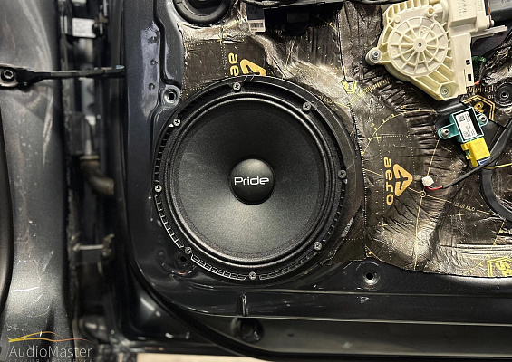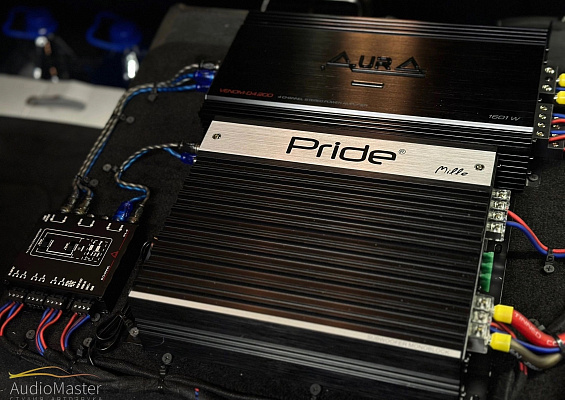 Акустика была установлена по штатным местам, на фронт установили эстрадную акустику Pride Diamond 8 v.3, а в задние двери установлены Pride Solo 200 6.5 Competition. Играет акустика от 4-х канального усилителя Aura Venom-D4.200.