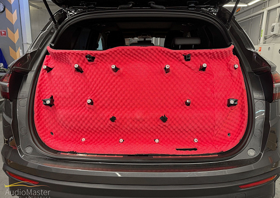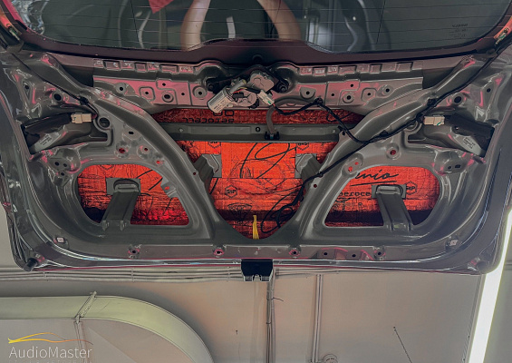 Крышку багажника обработали виброизоляцией STP Aerocell QP GENIO, на обшивку нанесли шумопоглотитель STP Biplast Premium RED.