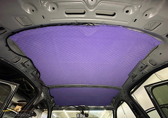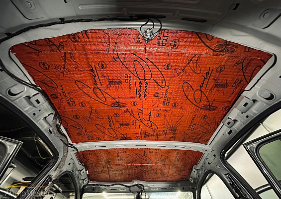 Выполнили шумоизоляцию крыши. Первым слоем выступил вибродемпфер StP Aerocell QP Genio 4mm, далее установили шумопоглотитель StP Biplast Wave 15.