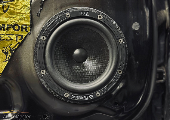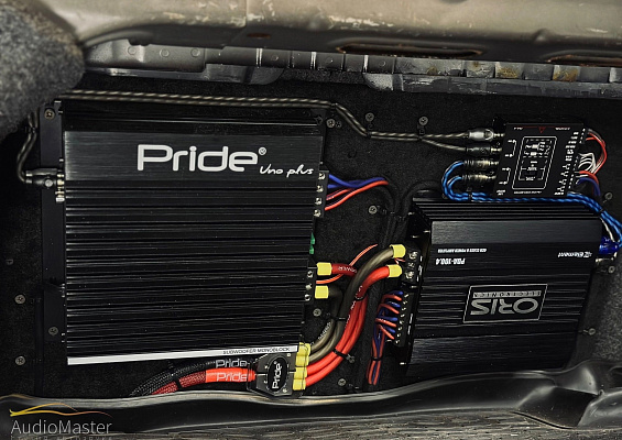 В передние двери установили 2-х компонентную акустику Blam 165ES, в задние двери установили коаксиалы Blam 165EC. Акустика играет от 4-х канального усилителя Oris PDA-100.4. А также установили моноблок Pride Uno Plus для подключения будущих сабвуферов.