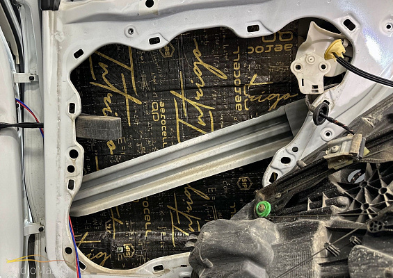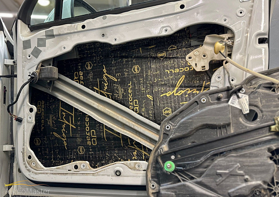 И произвели шумоизоляцию 4-х дверей, на внутреннюю часть двери нанесли StP Aerocell QP Intrigo 6mm, дверные обшивки обработаны STP Biplast 15 Wave.