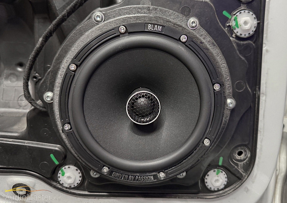 В передние двери установили 2-х компонентную акустику Blam 165 R2X, в задние двери установили коаксиалы Blam 165 R2C. Управлять аудиосистемой будет процессорный усилитель Hellion HAM 6.80DSP.