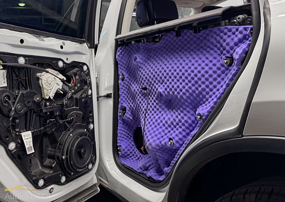 - Замена штатной акустики и шумоизоляция дверей в автомобиле Volkswagen Touareg