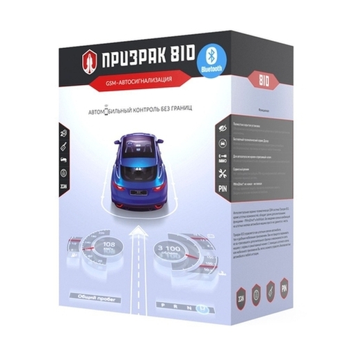 Призрак-810/ВТ» – обновленная версия GSM-сигнализации. Она построена на новой «топовой» платформе, которая использует самые современные технологии. Функционал сигнализации расширен за счет применения беспроводной технологии Bluetooth. Благодаря этому стали доступны возможности, связанные с использованием беспроводной периферии (например, подкапотный модуль, смартфон в качестве метки и др.), а также беспроводная настройка системы в процессе установки. Также, это дало возможность дооснастить сигнализацию метками. Это может быть миниатюрная Slim-метка или ключ-метка Key-ID. В сигнализации возросло количество входов и выходов на разъемах центрального блока. Благодаря этому на большинстве современных автомобилей можно подключить функцию автозапуска без использования дополнительных модулей.